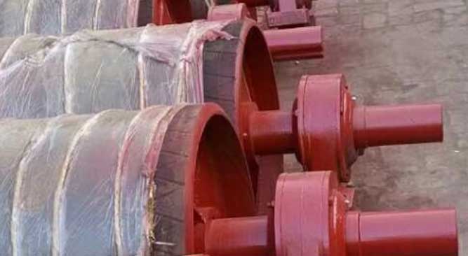 進口生產(chǎn)線中,前夾持伸張裝置和中夾持裝置分別固定在主機下活動平臺兩端,并隨之上、下運動。后夾持伸張裝置與硫化機分開,由于其在負載工作時所受彎矩較大,因此設(shè)備地基要嚴格計算。這3套裝置的夾持板均設(shè)計成凸凹圓弧過渡結(jié)構(gòu)形式,以使在夾持拉伸帶坯或成品輸送帶時不致產(chǎn)生明顯竄動。進口生產(chǎn)線硫化機共有7組雙層框板,上橫梁采用整體式結(jié)構(gòu),為便于裝卸和安裝,下活動平臺采用兩段結(jié)構(gòu),在安裝完畢后按有關(guān)制造工藝要求把兩段平臺焊接在一起,成為實際上的整體下活動平臺。由于上橫梁和下平臺厚度較大,而且一面與熱板接觸,另一面與空氣接觸,上、下兩面溫差較大,會產(chǎn)生明顯的熱變形。根據(jù)經(jīng)驗,溫差為20攝氏度左右時,計算出的變形量為6.smm,為中間凸出形式。在硫化膠帶時,此變形量在高壓下無法完全消除,因而造成橡膠輸送帶硫化時兩端局部欠壓。同時在每合攏分開一次熱板時,在靜態(tài)下有較大彎曲變形的上橫梁和下活動平臺就要彎曲一次,這樣對設(shè)備很不利,大大縮短了設(shè)備的使用壽命。為解決熱變形彎曲問題,在整體式上橫梁和下活動平臺中,進口生產(chǎn)線中采用了較先進的循環(huán)冷卻水降溫的方法,可使上橫梁和下平臺的整體溫差控制在4℃左右。這時的彎曲變形量經(jīng)計算僅為1.3mm,在熱板合攏、高壓硫化輸送帶時,變形基本可以消除,對硫化制品質(zhì)量無很大影響。通過冷卻水的流量可根據(jù)整體溫差大小由溫度傳感器反饋給微機進行控制。硫化機上、下熱板前端有300mm長的冷水槽,并在此處各有幅度為3mm的弧度,旨在符合硫化工藝要求,避免輸送帶火接頭出現(xiàn)重皮,從而提高產(chǎn)品質(zhì)量。用冷壓鉛方法檢測的熱板面大平面度誤差為0.14mm,遠遠小于要求的誤差值范圍。上、下熱板蒸汽加熱及控制方法與國產(chǎn)設(shè)備基本相同。上、下熱板各加熱回路均有單獨的.疏水閥,蒸汽調(diào)節(jié)裝置的開啟由壓縮空氣開關(guān)控制,其開啟程度由微機屏幕顯示,并隨熱板溫度變化而自動由微機在O一100%范圍內(nèi)調(diào)節(jié)。硫化機頂墊鐵裝置采用液壓傳動形式。主要部件是上運動板和下運動扳,組合在一起后安裝在下熱板兩側(cè)。兩塊上運動扳各固定有兩個液壓缸,方向與熱板平行,分別對稱安裝在兩側(cè)。液壓缸的柱塞末端固定在下運動板上,下運動板具有斜度的凹槽與下熱板支耳上的凸臺相匹配,在液壓裝置驅(qū)動下運動板運動時,借助平凹槽的斜度,下運動板作縱向及橫向的合成運動。這時下運動板也帶動上運動板一起作橫向運動,這里的橫向運動即為頂邊鐵的有效動作,其行程可根據(jù)輸送帶的硫化工藝在有刻度的絲杠上無級調(diào)整,范圍為0-40mm,由光電傳感器反饋給微機,控制頂邊鐵運動幅度。邊鐵的頂入及拉回速度均為12mm/s。由于硫化機下活動平臺面積較大,驅(qū)動其運動的液壓缸較多,而液壓柱塞上升幅度在輕載時不可能完全同步,造成下活動平臺上升失穩(wěn),發(fā)生隨機跑偏現(xiàn)象。為解決這一問題,采用了機械式平衡裝置,它由一根縱貫所有框板的長軸和兩套齒輪齒條裝置組成,長軸從液壓缸底部穿過,齒條與下活動平臺端部連接,齒輪在框板外側(cè)連接在長軸上與齒條嚙合。當(dāng)下活動平臺升降時,齒條隨之上、下運動,齒輪旋轉(zhuǎn)運動。由于長軸的轉(zhuǎn)速是相等的,迫使在其兩端的兩組齒輪轉(zhuǎn)速也必須相等,使與齒輪嚙合的齒條帶動下活動平臺的上、下運動能夠同步,保持平衡。由一j幾前夫持伸張裝置和中夾持裝置在硫化機下活動平臺上隨之上、下運動,且下活動平臺、下熱板等裝置較重,使硫化機下平臺上升時空載負荷較大,計算的壓力達O.3MPa,造成液壓動力功能損失。液壓系統(tǒng)中沒有硫化機在緊急狀態(tài)下手動開模功能,若生產(chǎn)線上意外停電或其它原因不能自動開模時,無法把需卸下的輸送帶松開。為解決這一問題,我們重新安裝了手動液壓卸模裝置,并試驗成功。在硫化機的兩端各有一套提帶輥,輥可繞軸旋轉(zhuǎn),軸可由液壓動力驅(qū)動往復(fù)上、下運動。當(dāng)需要提升膠帶時,輥子上升,否則降到底部。