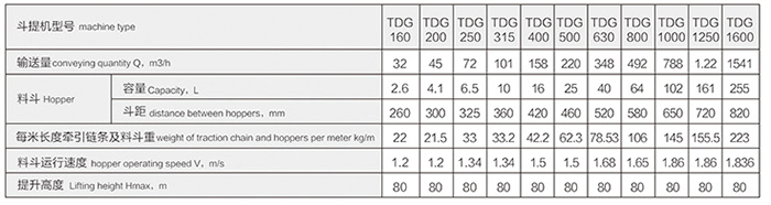 TDG型高效斗式提升機技術參數