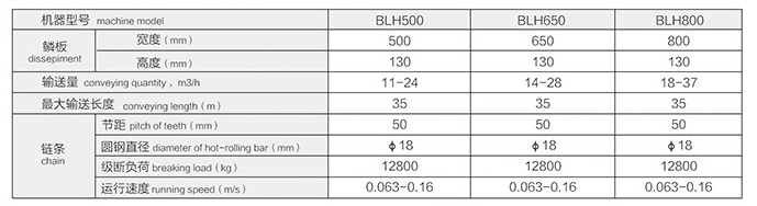 3、BLH環(huán)鏈式鱗板輸送機系列技術參數