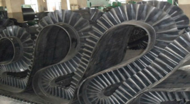 大傾角輸送帶的裙邊設計成類似于波浪形的形狀,物料向一側滑落的時候,就會被波浪形擋邊擋到原定位置。我們的裙邊高度由50-500不等,都是由特定的模具加工而成。然后通過二次硫化的方式硫化而成,十分的牢固耐用。
