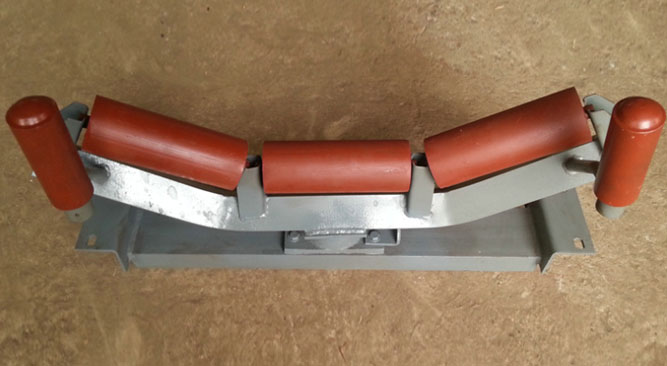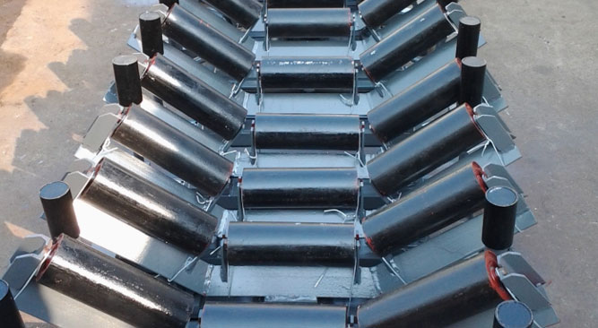 皮帶機的托輥決定了輸送機的使用效果,特別是決定輸送帶使用壽命的重要部件之一。托輥組的結構在很大程度上決定了輸送帶和托輥所受承載的大小與性質。支承托輥的作用是支承輸送帶及帶上的物料,減小帶條的垂度,保證帶條平穩運行,在有載分支形成槽形斷面,可以增大運輸量和防止物料的兩側撒漏。