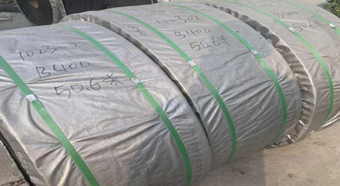 T1:試驗溫度不超過100t 2:試驗溫度不超過125t 3:試驗溫度不超過150t 4:試驗溫度不超過175。耐熱輸送帶的強度和寬度規格與普通輸送帶相同。膠帶標記示例:200 1200 EP 5 1000 8+3 T2表示膠帶的長度和寬度為200 m和1200 m m。膠帶的核心是五層的EP帆布。強度規格為1000N/mm。上下涂層厚度分別為8 mm和3 mm。涂層能承受不超過125℃的試驗溫度。