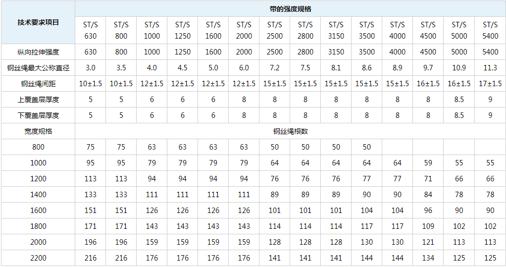 普通結構型鋼絲繩芯輸送帶普通結構鋼絲繩輸送帶特點: 新結構鋼絲繩用作拉伸體。它具有較大的拉伸強度,較小的伸長率,良好的溝槽形成和良好的抗彎曲性。適用于輸送長距離,大容量,高速的物料。 新型結構鋼絲滲透特性 核心橡膠具有足夠的滲透空間進入各股之間。橡膠和鋼絲繩具有高粘接強度,良好的抗腐蝕性能,減輕了股線的剪切和扭曲,并具有優異的抗動態疲勞性。延長產品壽命。