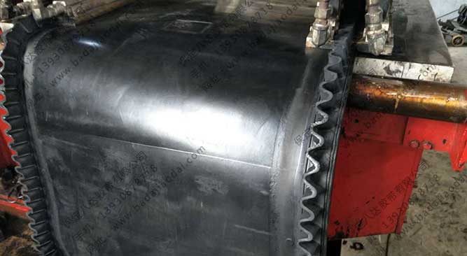 波形擋邊帶是由上下覆蓋膠,帶芯組成的平行基帶與內(nèi)貼置防撕裂帆布層外覆橡膠的波狀擋邊經(jīng)二次硫化加工而成的裙邊輸送帶。